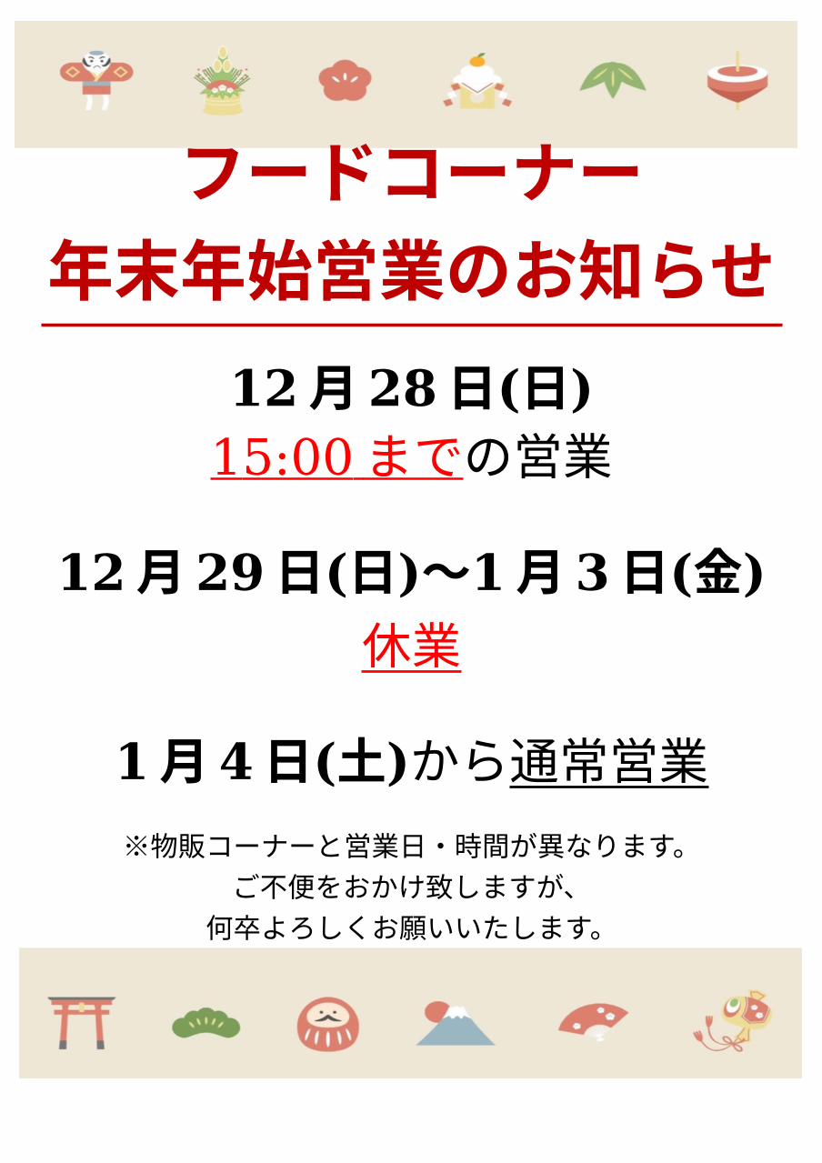 2025.12.28 ブログフードコーナー、年内の営業終了いたしました。