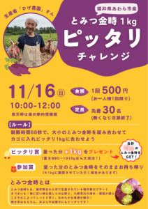 いよいよ今週日曜!「とみつ金時1kgピッタリチャレンジ」🍠